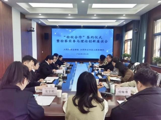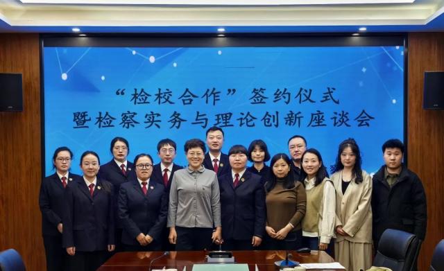 杨兴香院长一行先后参观了知识产权检察办公室、12309检察服务中心、桑干河生态检察官履职办案中心、漫话检察工作室、电子阅览室、代表委员联络室、荣誉室。座谈会上,段华检察长代表云州区检察院全体干警对杨院长一行的到来表示热烈欢迎!段华检察长与杨兴香院长共同签署了《深化“校检共建”合作协议书》,与会人员围绕检察实务与理论创新深入融合展开交流发言。